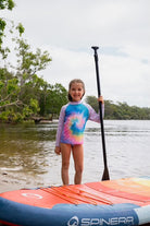 Ready to keep your water-loving girl safe and stylish? The Jetpilot Girls LS Rashie in Tie Dye is here to make a splash! This rashie is not just about good looks; it’s packed with features that every beach babe needs. When it comes to sun protection, this kids rashie has you covered with a UPF50+ rating. Say goodbye to sunburn worries and hello to endless fun in the sun! Crafted from 8oz Hydro Tech Polyester/Spandex, this rashie combines comfort and durability, stretching with every move and staying strong swim after swim. Plus, it’s chlorine-resistant, ensuring it stands up to all the pool parties and ocean dips. The tailored fit offers full coverage, so your girl can focus on the fun without constant readjustments. Available in three fab designs – Tie Dye, Teal Daisy, and Fairy Floss – there’s a look for every personality. The fully sublimated prints keep the colours popping, no matter how many times it hits the wash. This girls rashie features a round neck with a slim collar for a sleek and sporty look. The twin needle cuff and waist hem provide extra durability, perfect for active play and long days by the water. Whether she's riding the waves, exploring rock pools, or just lounging in the sun, the Jetpilot Girls LS Rashie - Tie Dye is the ultimate sidekick. It’s more than a swim shirt; it’s a statement of style and a shield of protection. Don’t let ordinary swimwear hold her back – let her stand out with the best. Snag the Jetpilot Girls LS Rashie today and ensure she stays protected and trendy all summer long. With keywords like kids rashie, uv protection shirt, and girls rashie sprinkled throughout, you'll be sure to find exactly what you need for your little adventurer. Dive into the perfect blend of safety and style with Jetpilot!