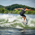 The SHIM is perfect for intermediate to advanced riders looking to take their skills to the next level. The SHIM has a fast rocker that allows it to carry speed anywhere on the curl, and its shorter profile makes it super maneuverable for rotational and air tricks. This new shape also features our DuraShell Construction which combines the buoyancy and feel of a high-end EPS board and the durability of a compression molded shape. Overall, the SHIM delivers the best of all worlds and one that a wakesurf enthusiast can’t pass