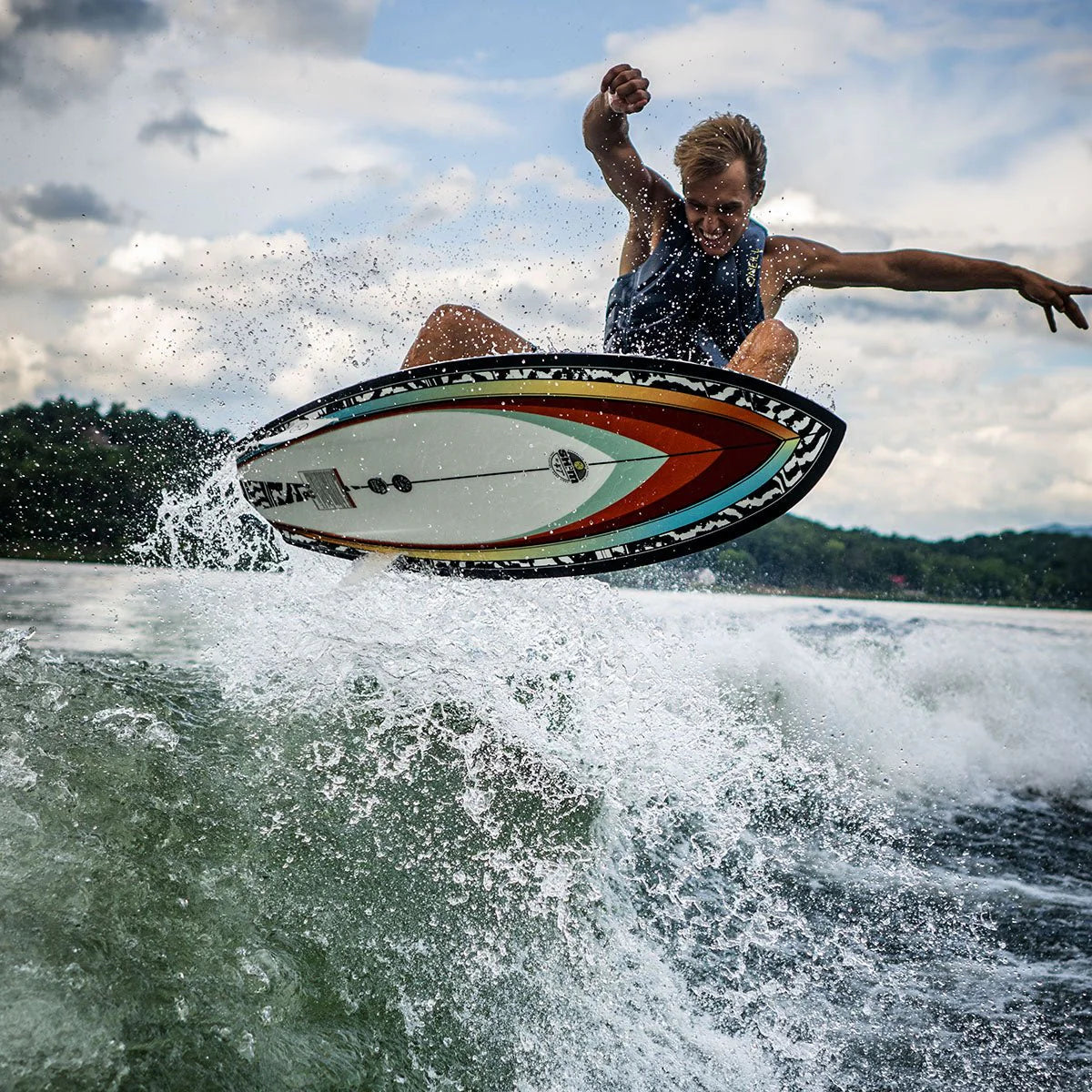 The SHIM is perfect for intermediate to advanced riders looking to take their skills to the next level. The SHIM has a fast rocker that allows it to carry speed anywhere on the curl, and its shorter profile makes it super maneuverable for rotational and air tricks. This new shape also features our DuraShell Construction which combines the buoyancy and feel of a high-end EPS board and the durability of a compression molded shape. Overall, the SHIM delivers the best of all worlds and one that a wakesurf enthusiast can’t pass